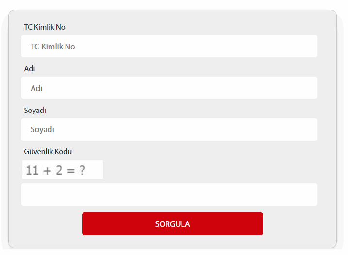 Gerekli olan bilgileri girin ve sorgula butonuna tıklayın.