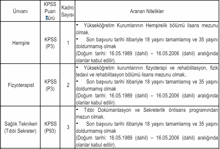 En az ortaöğretim mezunu adaylar arasından yapılacak alımda KPSS P3, P93 ve P94 puan türü ile istihdam olacak. Başvuru yapacak adaylarda aranan şartlar ise şu şekilde: