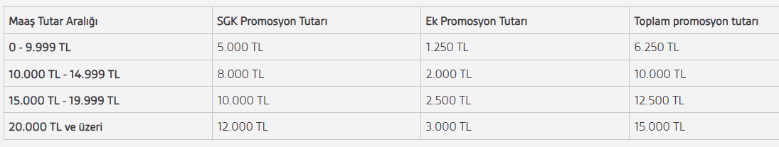 Bankamızdan birden fazla emekli maaşı alan müşteriler, 1 den fazla maaşı için promosyon talebinde bulunurlarsa ilgili maaşların toplam tutarına göre 1 kez promosyona hak kazanır.