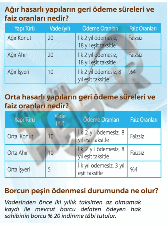 AFAD sayfasında yayınlanan son dakika açıklamasında yıkılan evlerin yerine yapılacak TOKİkonutların geri ödemelerinin olacağına yer verildi. Devlet destekli şekilde yapılacak konutların bir kısmı devlet tarafından, bir kısmı ise vatandaş tarafından karşılanacak. Vatandaşlar ödemelerini taksitli şekilde yapacak ve evlerini satın alacak.