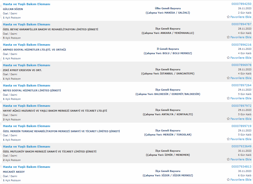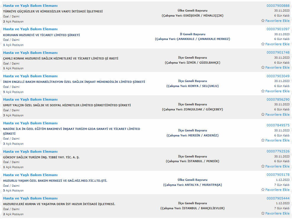 Devlet ve özel huzurevlerine işçi ve personel alımı yapılıyor.
