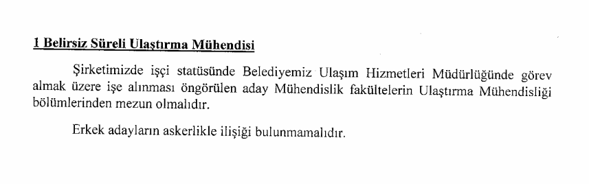 İŞKUR üzerinden yayınlanan son dakika açıklamasında farklı kadrolara alım yapılacağına yer verildi. İlanın başvurusuna dair detaylar ve başvuru bilgileri şu şekilde: