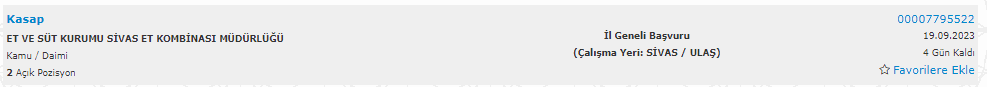 Türkiye İş Kurumu üzerinden bir son dakika açıklaması yapıldı ve Et ve Süt Kurumu bünyesine KPSS'siz personel alımı yapılacağı bildirildi. Kasap kadrosuna yapılacak olan personel alımı için başvurular internet üzerinden 15 Eylül tarihi ile alınmaya başladı. Bizde bu yazımızda söz konusu personel alım ilanın başvuru detaylarına yer verdik.
