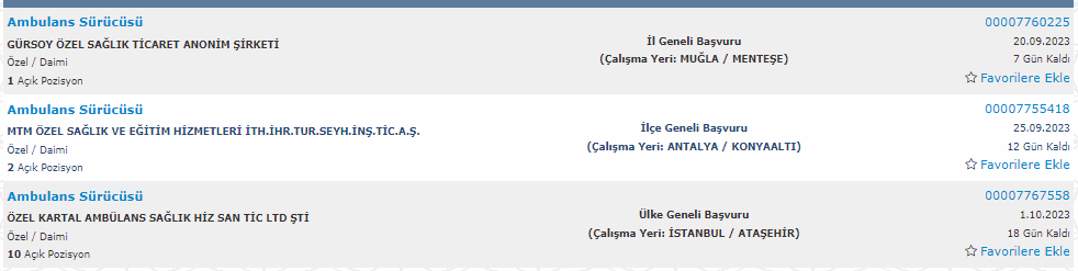 Özel hastanelere ambulans şoförü alımı yapılacak.
