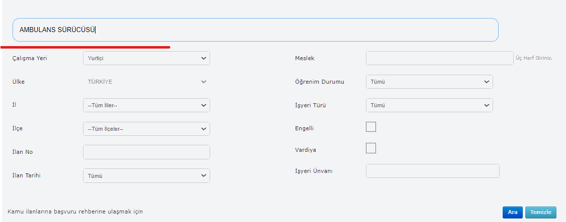 Yukarıdaki gibi aradığınız pozisyon yazan kısmına , başvuru yapmak istediğiniz kadroyu yazın ve ARA butonuna tıklayın. İlanlar aşağıda sıralanacaktır. Kadın erkek memurlar bu sayfada >>> TIKLA TAKİP ET