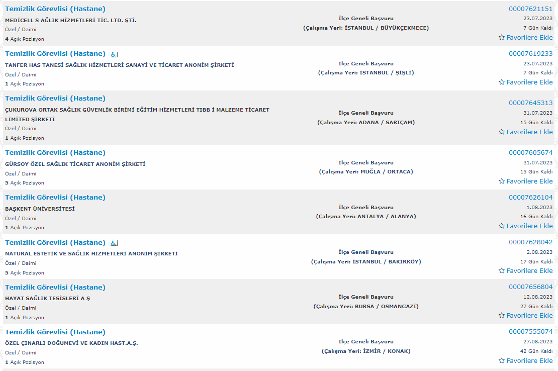 Hastane temizlik görevlisi ve hizmetli alım ilanları yayımlandı. Türkiye İş Kurumu remsi internet adresi üzerinden yapılan duyurulara baktığımızda özel hastaneler bünyesinde istihdam edilmek üzere personel ve işçi alımı yapılacağına yer verildi. Hastane hizmetlisi ve temizlik görevlisi kadrosuna yapılacak personel alımında başvurular internet üzerinden ve hastanelere yapılacak.