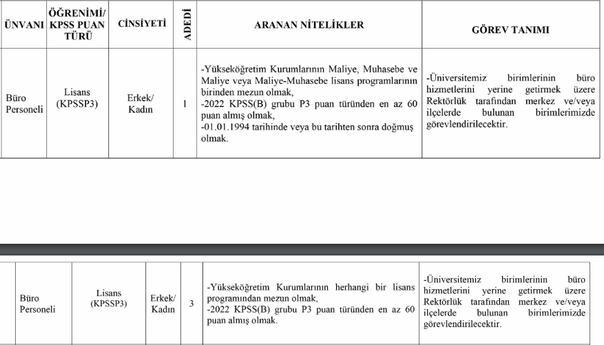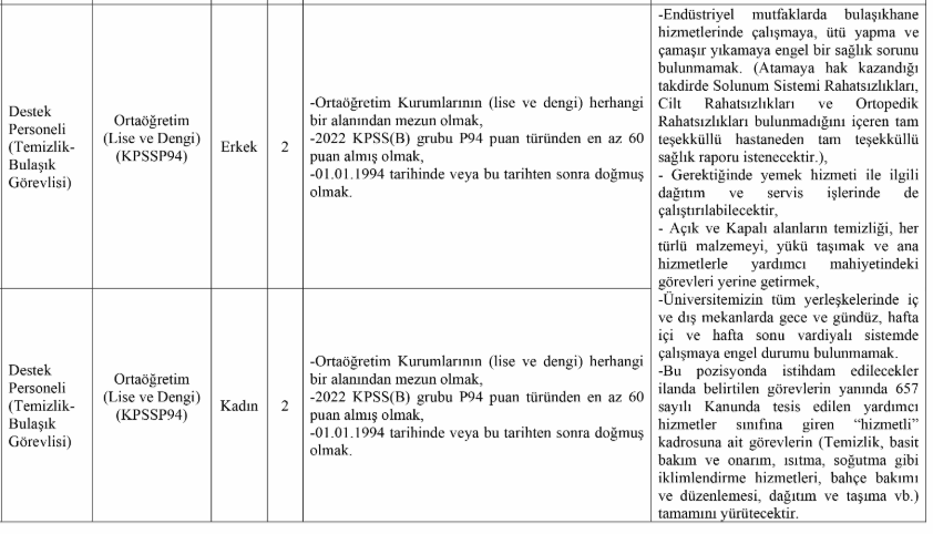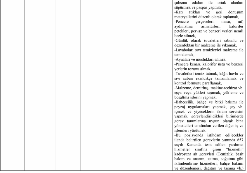 İlana göz attığımızda adayların büro personeli, temizlik personeli, bulaşık personeli, park ve bahçe personeli, şoför, bakım onarım personeli, güvenlik görevlisi ve hizmet personeli kadrolarında istihdam edileceği bildirildi.