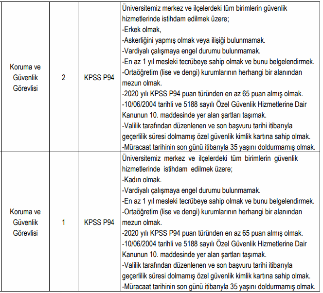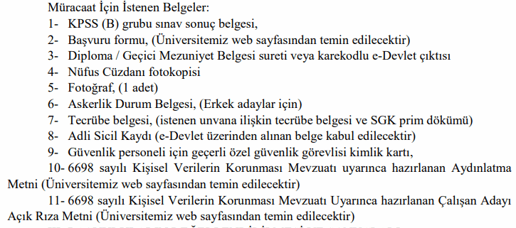 10- Adaylar ilan edilen kadrolardan sadece birine başvurabilecek olup birden fazla kadroya başvuru yapamayacaktır.