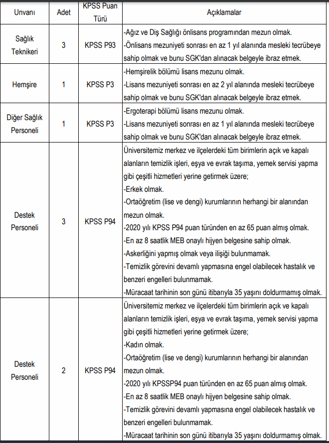 Kütahya Sağlık Bilimleri Üniversitesi tarafından bir açıklama yapıldı. Yapılan açıklamada en az lise mezunu adaylar arasından sözleşmeli personel alımı yapılacağına yer verildi. Sözleşmeli Personel Çalıştırılmasına İlişkin Esaslar"da yer alan Ek 2'inci maddenin (b) fıkrası gereğince yapılacak kamu personeli alımı mülakatsız olarak gerçekleştirilecek ve adaylar KPSS puanına göre atanacak.