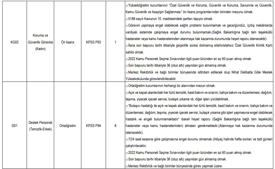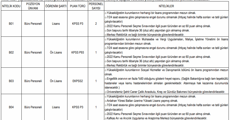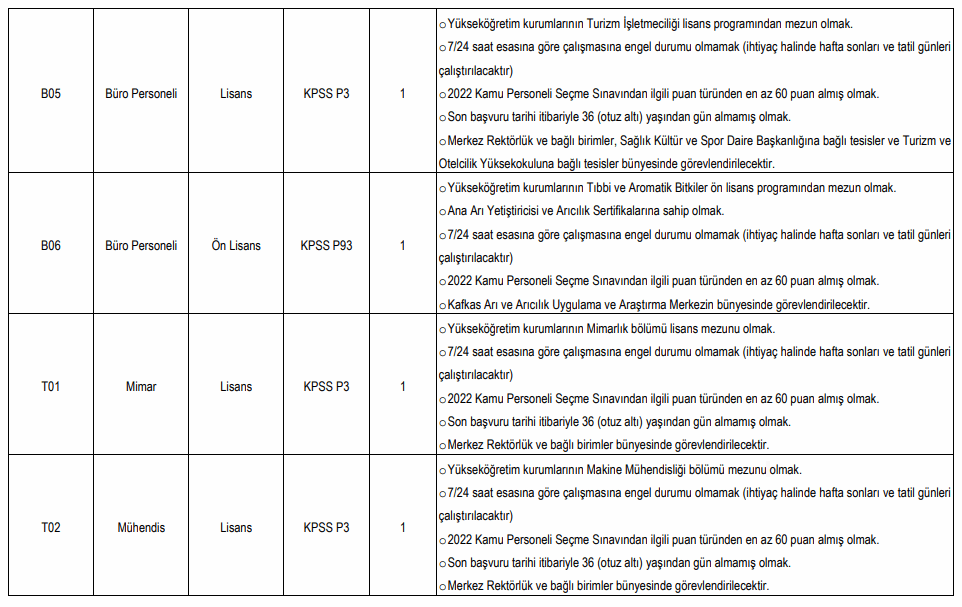 Ardahan Üniversitesi temizlik, güvenlik, büro personeli, teknisyen alımı yapacak.