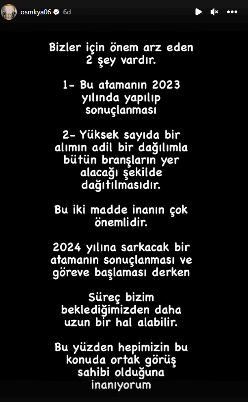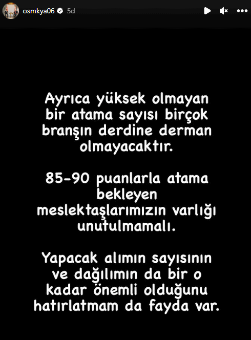 Genç Sağlık Sendikası Genel Başkanı Osman Kaya, sosyal medya hesabı üzerinden sağlıkta personel ataması için aldığı son bilgileri paylaştı.