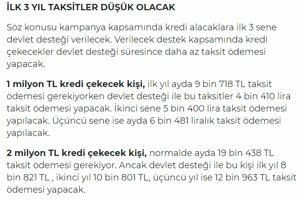 Yeni evim konut finansman paketine baktığımızda vatandaşlara 0.69 faizli kredi verileceği ve vatandaşların ucuz faizli kredi ile ev sahibi olabileceğine yer verildi.
