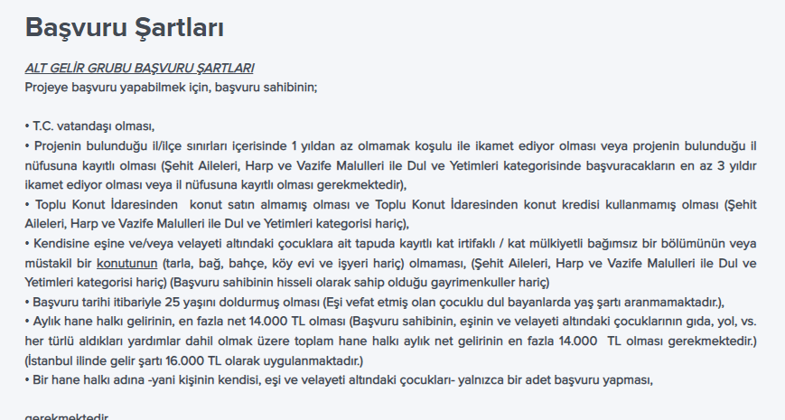 TOKİ resmi sayfası üzerinden yayımlanan açıklamada başvuru şartlarına şu şekilde yer verildi: