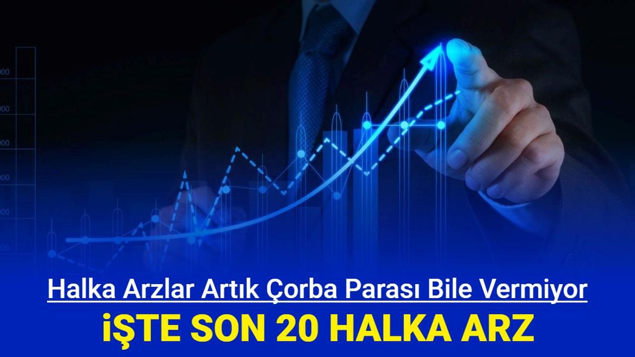 Son 20 halka arzın arz fiyatı ile şimdiki fiyatlarına baktığımızda yüzde 100'ün üzerinde artan sadce 3 hisse olduğu görülüyor. 10 tanesinin fiyatı halka arz fiyatının üzerinde olurken 10 tanesinin ise kaybettirdiği görülüyor.