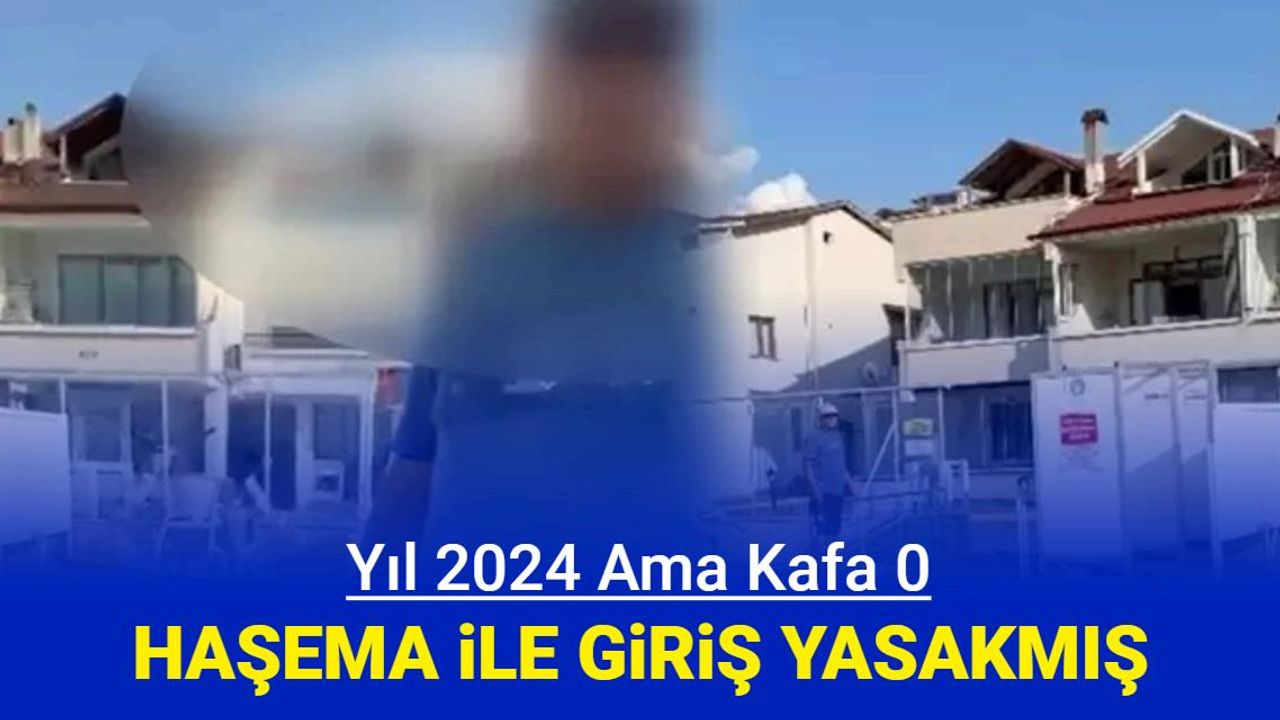 Görüntülerde site yöneticisinin havuza haşema ile girişinin yasak olduğunu söylediği ve buranın kuralları var dediği öğrenildi.