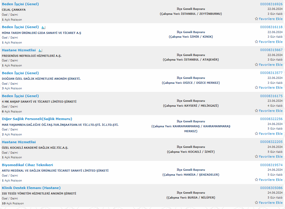 İŞKUR'dan hastanelere personel ve işçi alımı.