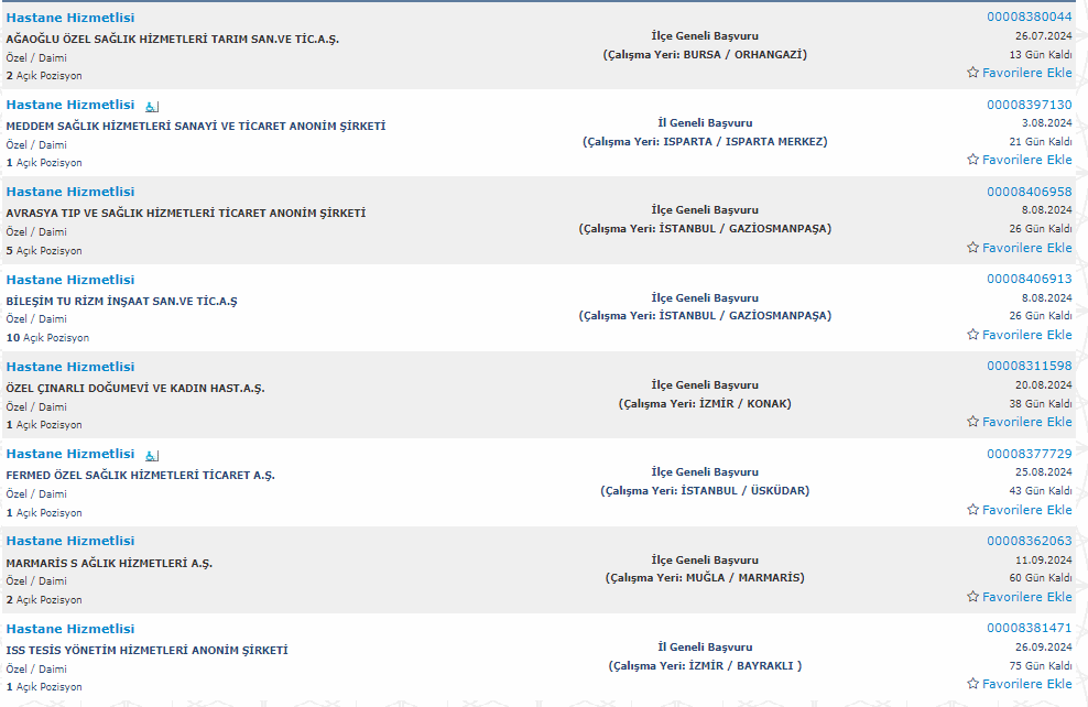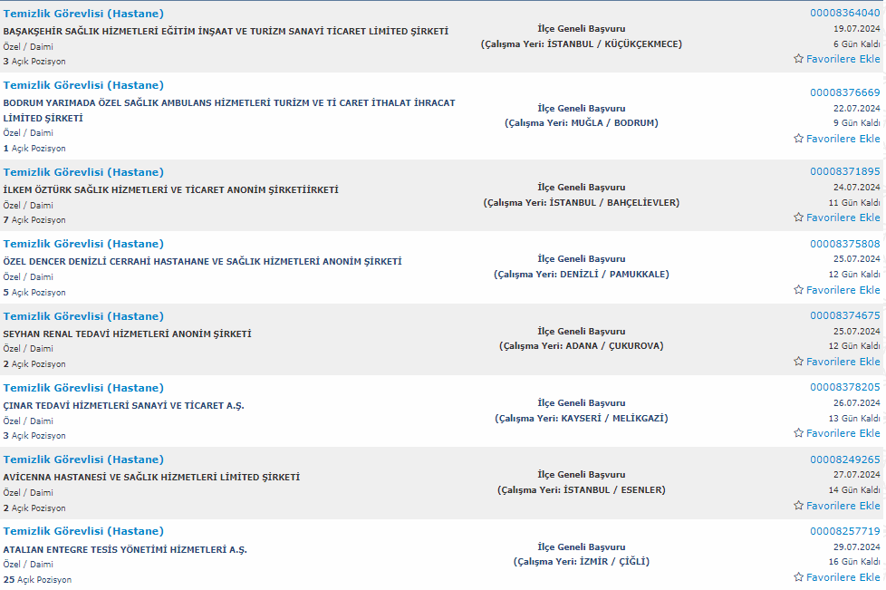 İŞKUR'da yayınlanan personel alımı ilanları şu şekilde: