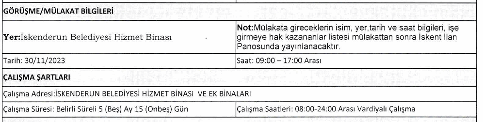 Hatay İskenderun Belediye Başkanlığı tarafından bir son dakika açıklaması yapıldı. Yapılan açıklamada beden işçisi kadrosunda istihdam etmek üzere 100 işçi alımı yapılacağına yer verildi. Bugün yayınlanan ve başvurusu bugün başlayan personel alımında müracaatlar 28 Kasım 2023 tarihine kadar devam edecek. Söz konusu personel alımına başvuru yapacakların aşağıdaki şartları taşıması gerekmektedir: