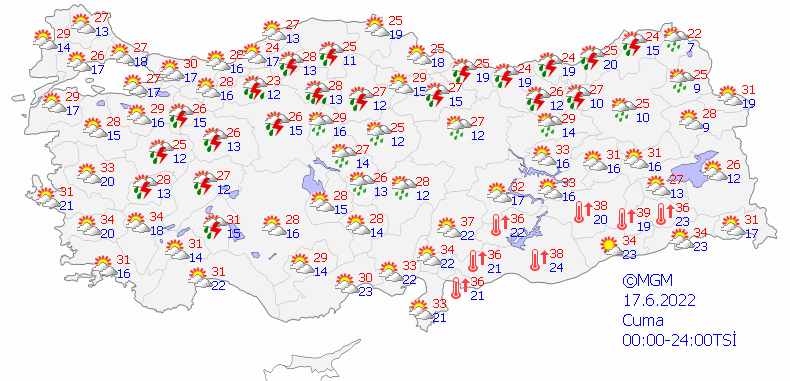 17 Haziran 2022 Cuma hava durumuna baktığımızda Doğu karadeniz ile iç anadoluda yağış beklendiği görüldü.