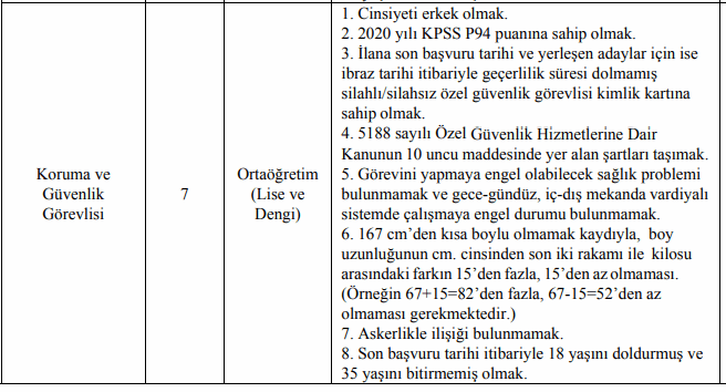 12- Koruma ve Güvenlik Görevlisi pozisyonuna başvuracak adayların kamu veya özel sağlık kuruluşunda boy ve kilo ölçümü yaptırarak