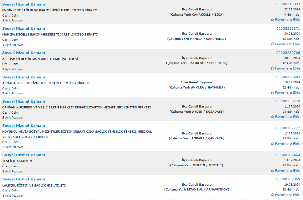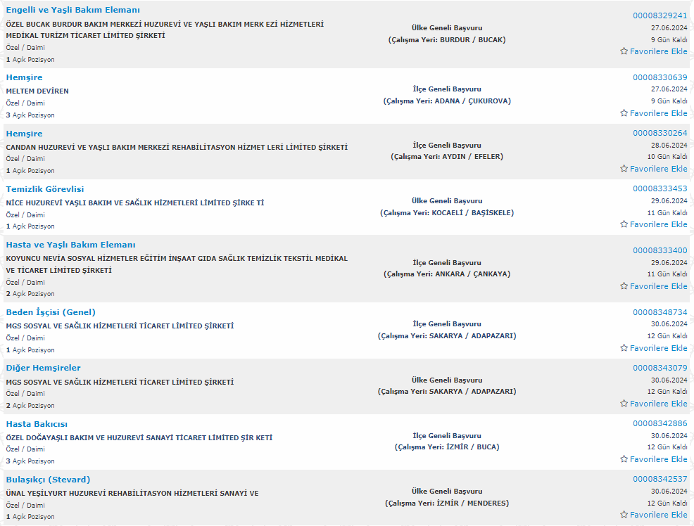 Huzurevi ve yaşlı bakım evlerine yapılan personel alımlarında kadrolar şu şekilde açıklandı: