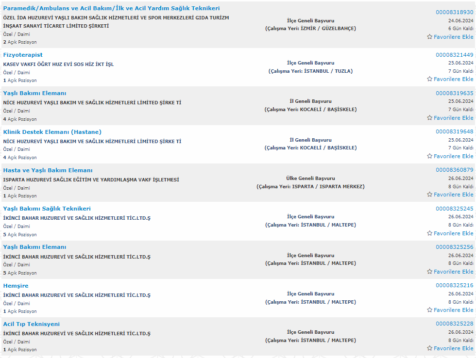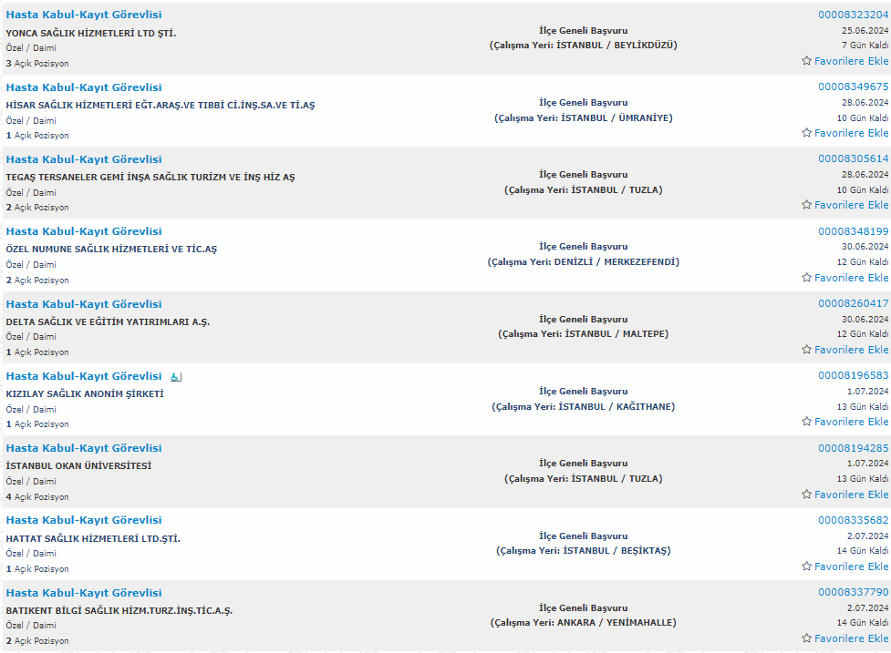 Başvuru yapacağı işi yapmasına engel olabilecek herhangi bir sağlık sorunu olmaması gerekmektedir.