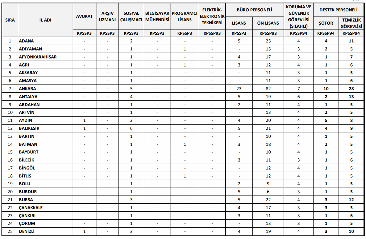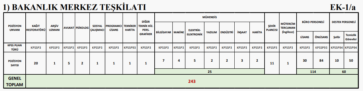 İçişleri Bakanlığı personel alımı aşağıdaki kadrolara yapılıyor: