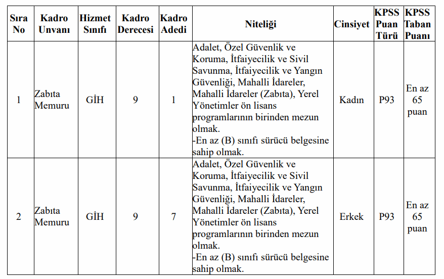 İlan edilen boş zabıta memuru kadrolarına atanmak için başvuracak adayların 657 sayılı Devlet Memurları Kanununun 40'ıncı maddesi ile 48'inci maddesinin birinci fıkrasının