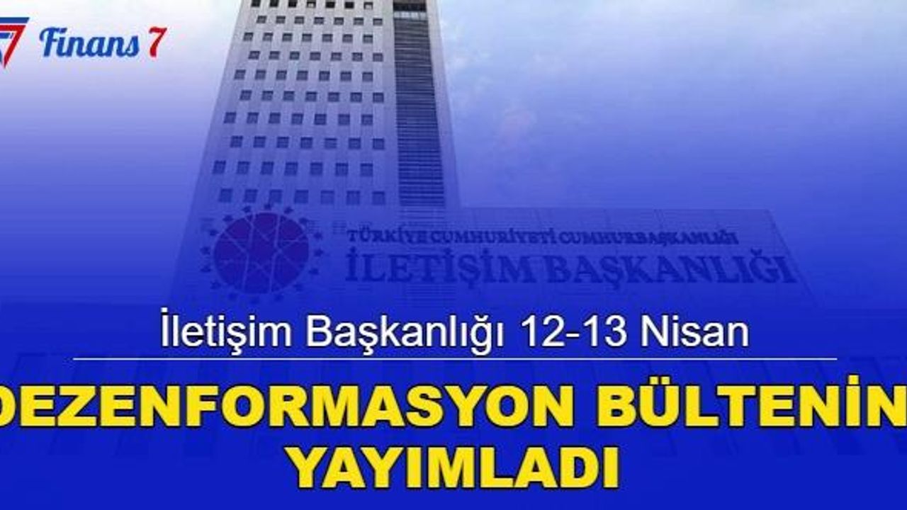 Cumhurbaşkanlığı İletişim Başkanlığı tarafından bir son dakika açıklaması yapıldı. İletişim Başkanlığı tarafından yapılan açıklamada 12-13 Nisan tarihlerini kapsayan Dezenformasyon Bülteninin yayımlandığı bildirildi. İşte dezenformasyon bülteni...