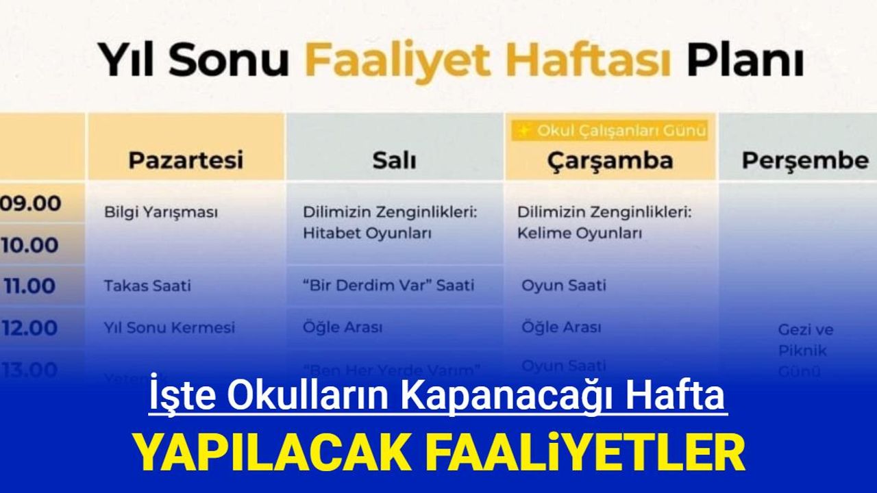 MEB açıkladı: Okullarda yılın son haftası yapılacak faaliyetlerin takvimi belli oldu. İşte son hafta yapılacaklar.