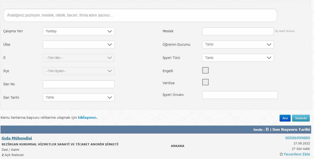 İŞKUR SAYFASINDAKİ İLAN
