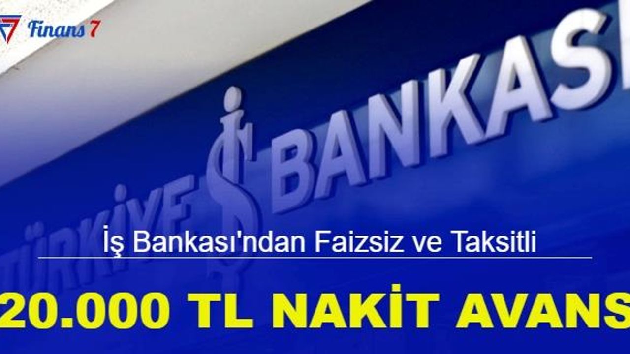 İş Bankası'ndan faizsiz 20.000 TL nakit avans kampanyası.
