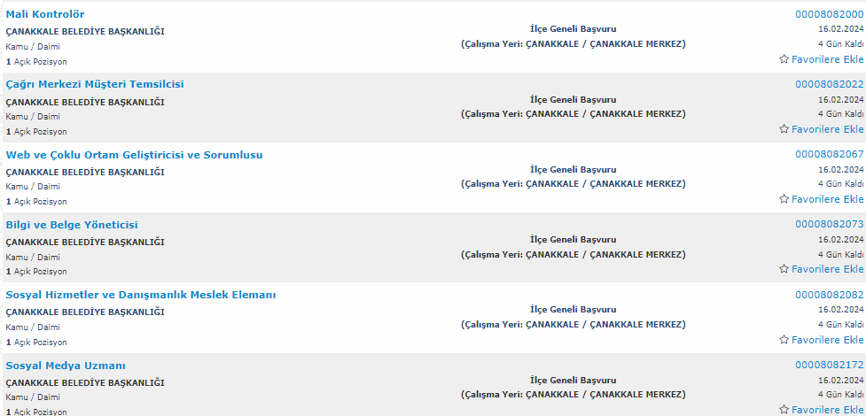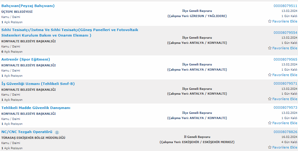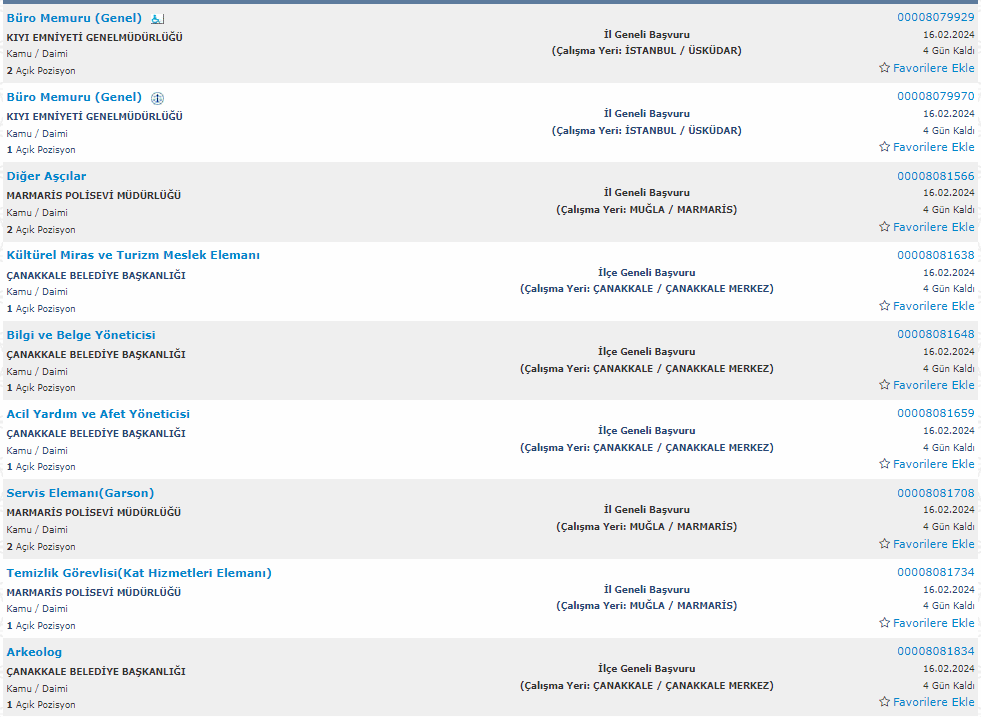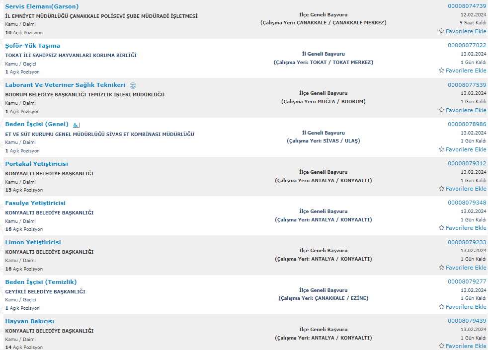 İŞKUR kamu ilanları ksımından yayınlanan duyurulara baktığımızda aşağıdaki kadrolarda çalıştırmak üzere personel alımı yapılacağı görülüyor:
