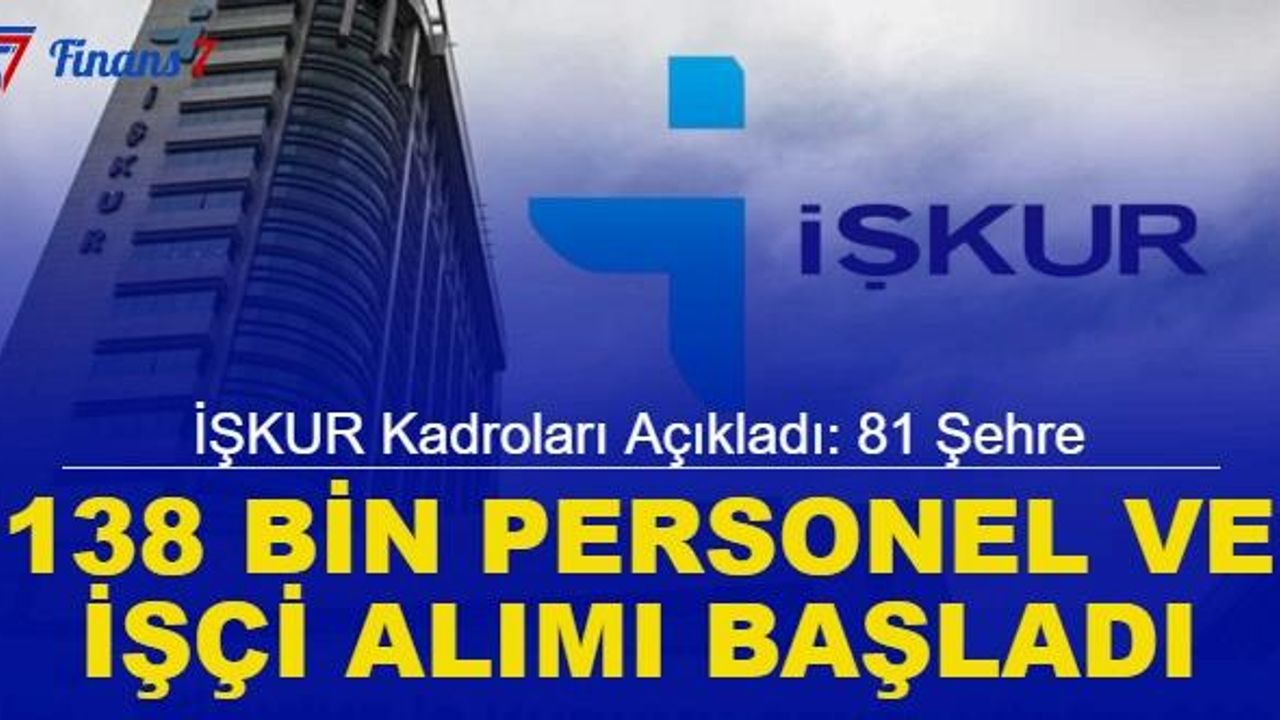 Türkiye İş Kurumu resmi internet adresi iskur.gov.tr adresi üzerinden yapılan açıklamaya baktığımızda 81 şehirde persone lalımı yapıldığı görülürken alımların toplam sayısının 138 bin 606 olduğu görüldü.