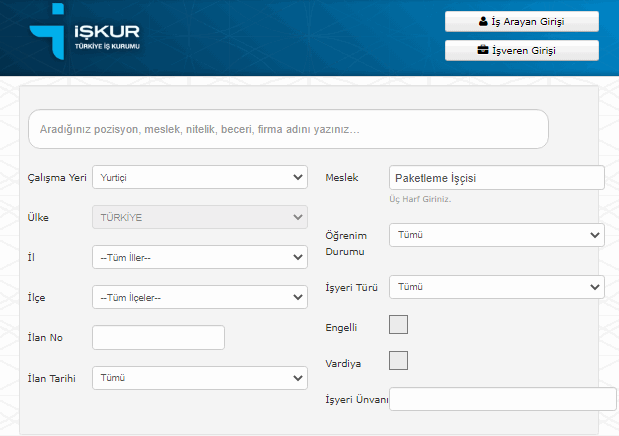 İŞKUR PAKETLEME İŞÇİSİ BAŞVURU SAYFASI