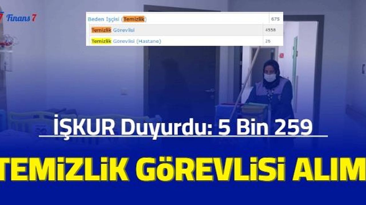 İŞKUR üzerinden yayınlanan personel alımlarına baktığımızda temizlik görevlisi kadrosuna 4 bin 558, hastane temizlik görevlisi kadrosuna 26, temizlik işçisi kadrosuna 675 olmak üzere toplamda 5 bin 259 temizlik görevlisi alımı yapıldığı görülüyor. İşte İŞKUR sayfasındaki ilanların ekran görüntüsü: