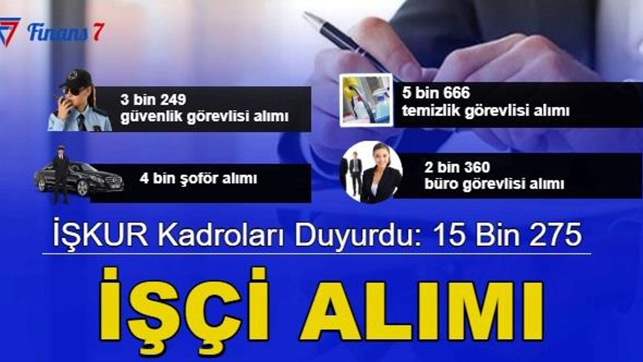 İŞKUR'dan son dakika duyurusu: Şoför, güvenlik, temizlik ve büro görevlisi kadrolarına 15 bin 275 personel alımı başladı.
