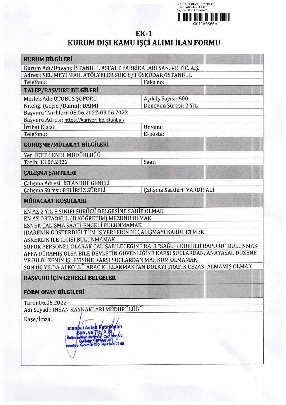 İstanbul Büyükşehir Belediyesi şirketi olan İstanbul Asfalt Fabrikaları kendi bünyesinde görevlendirmek üzere 700 daimi işçi ve soför alımı yapacak. Başvuru şartları ve detayları haberimizde...