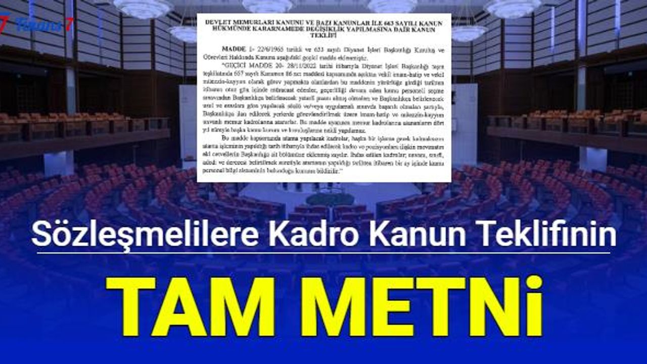 Sözleşmelilere kadro düzenlemesinin tam metni yayınlandı. TBMM'den yapılan son dakika açıklamasında kanun teklifinin tam metnine yer verildi. İşte yayınlanan kanun teklifinin tam metni: