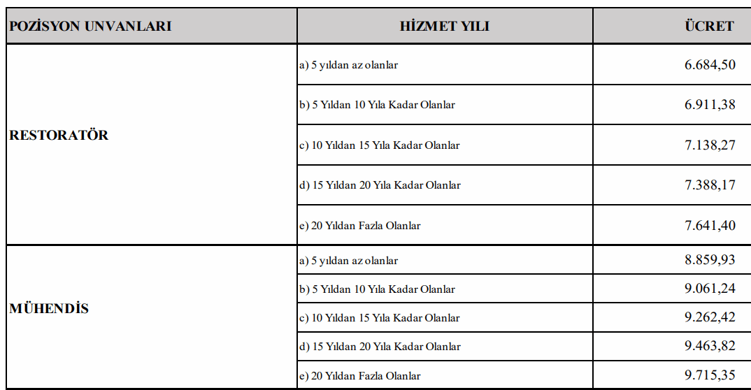 Alınacak personellere verilecek maaşlar ise şu şekilde açıklandı: