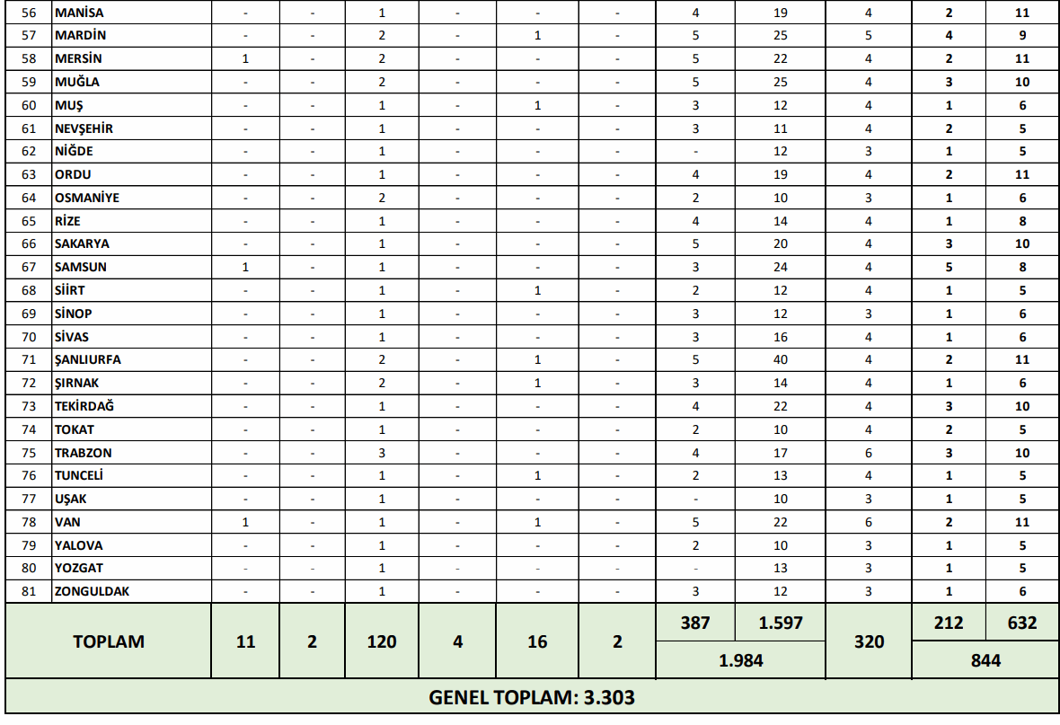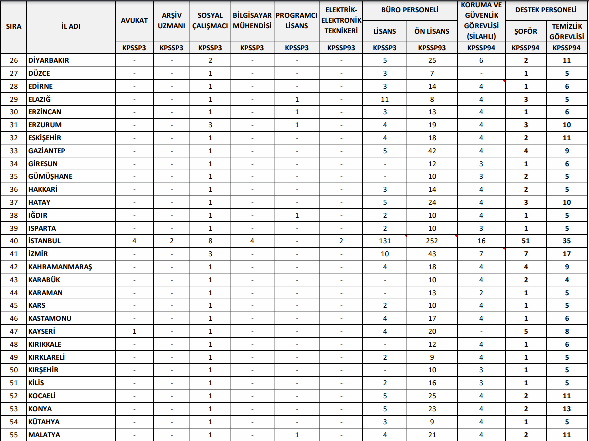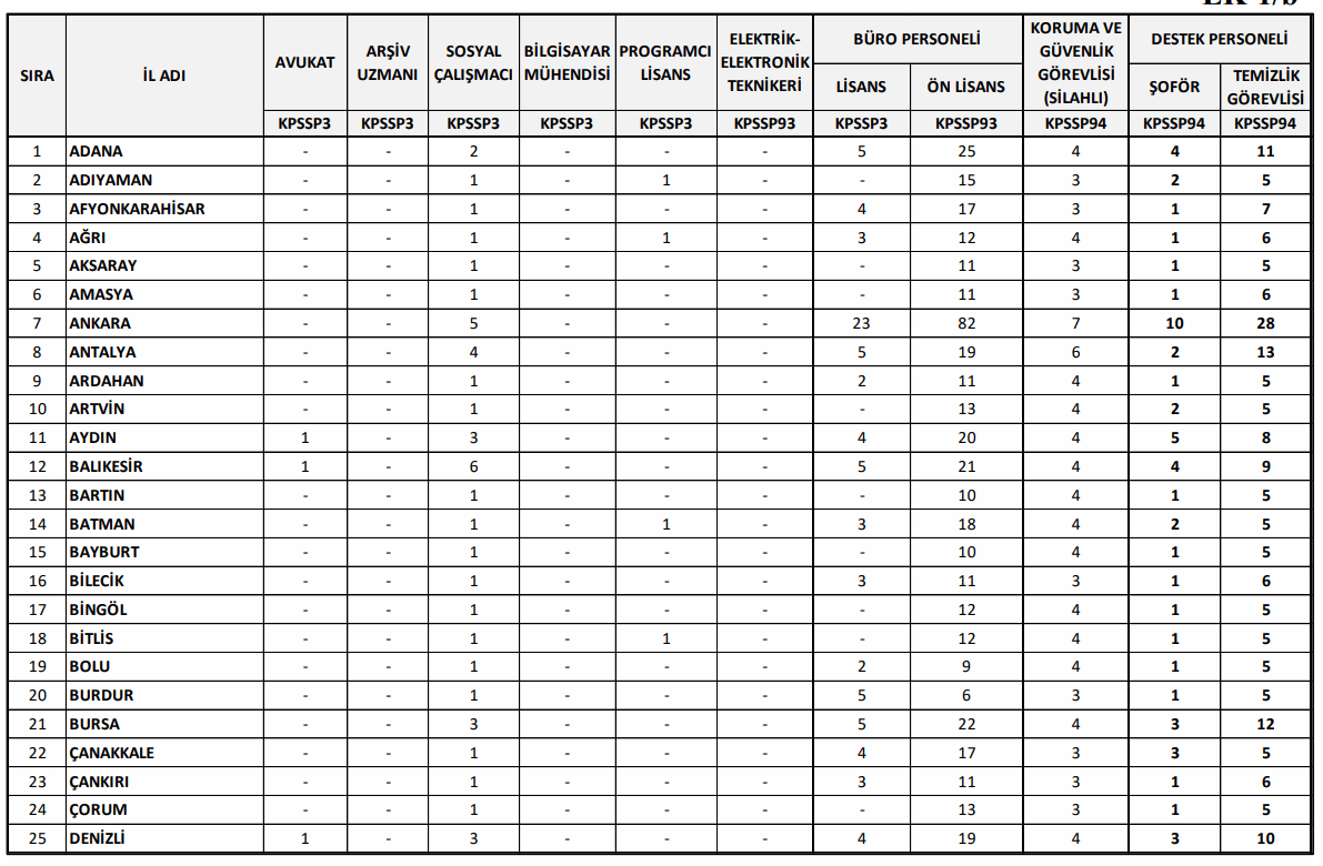 İçişleri Bakanlığı 3 bin546 sözleşmeli personel alımında kadrolar ve alınacak personellerin illere göre dağılımları şu şekilde verildi: