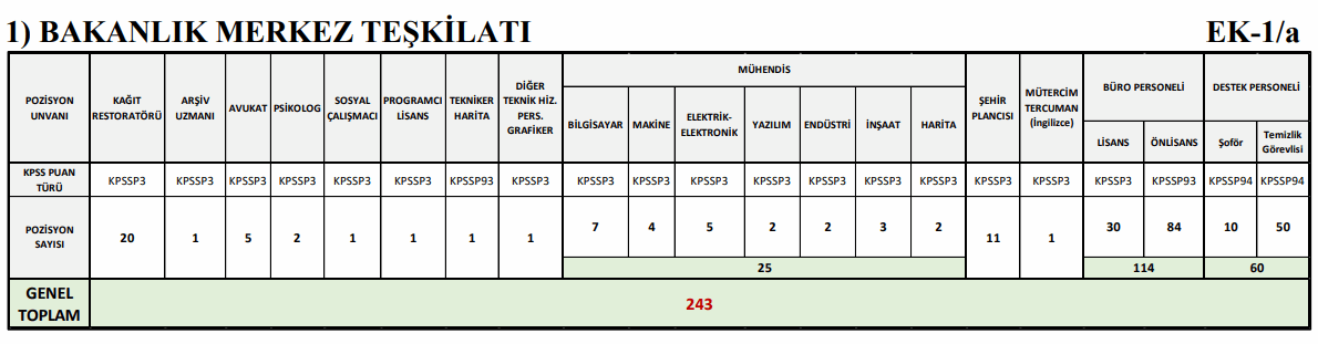 Son alımda büro personeli için taban puanlar aşağıdadır: