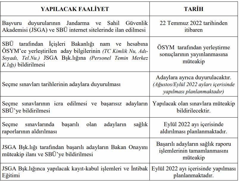 İlana başvurular https://vatandas.jandarma.gov.tr/PTM/Giris adresi üzerinden alınıyor.