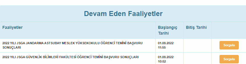 2022 YILI JSGA JANDARMA ASTSUBAY MESLEK YÜKSEKOKULU ÖĞRENCİ TEMİNİ BAŞVURU SONUÇLARI