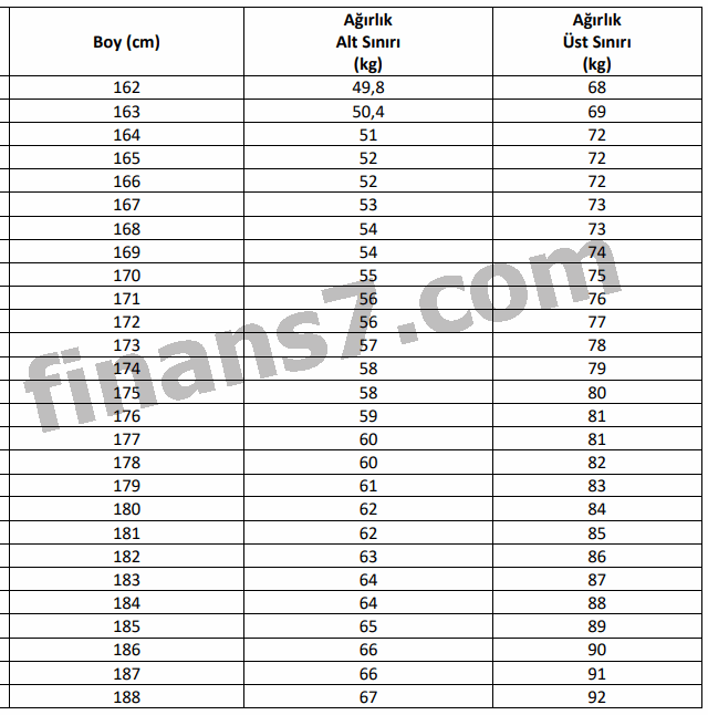 Subay astsubay alımında boy kilo şartı şu şekilde: