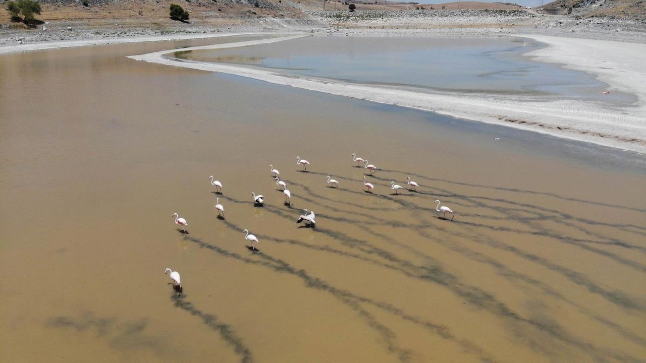 Son yıllarda istenilen yağışların da yaşanmamasının ardından gölet adeta kaderine terk edilirken, gölette yaşamını sürdüren flamingolar da gölet ile birlikte adeta yaşam mücadelesi veriyor.
