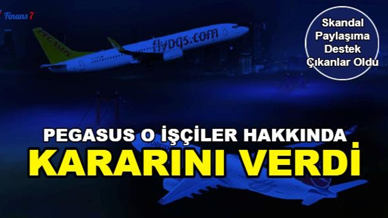 Kadir Gecesi yaptıkları skandal bir paylaşımla gündeme gelen ve Pegasus bünyesinde çalıştıkları öğrenilen kişiler hakkında karar verildiği açıklandı. 27 Nisan akşamı sosyal medya üzerinden yapılan ve kısa sürede büyük tepki çeken paylaşım , sosyal medyada 2 gündür en çok konuşulan , tepki gösterilen olay oldu. Görüntüde kişilerin içkili masada, ağızlarda sigaranın olduğu, Kadir Gecesi'nde çekilen fotoğrafın tepki çeken kısmı ise bu görüntünün üzerine 'Kadir Gecesi Özel' ve 'Rabbim Kabul Etsin' gibi sözlerin yazılması oldu.