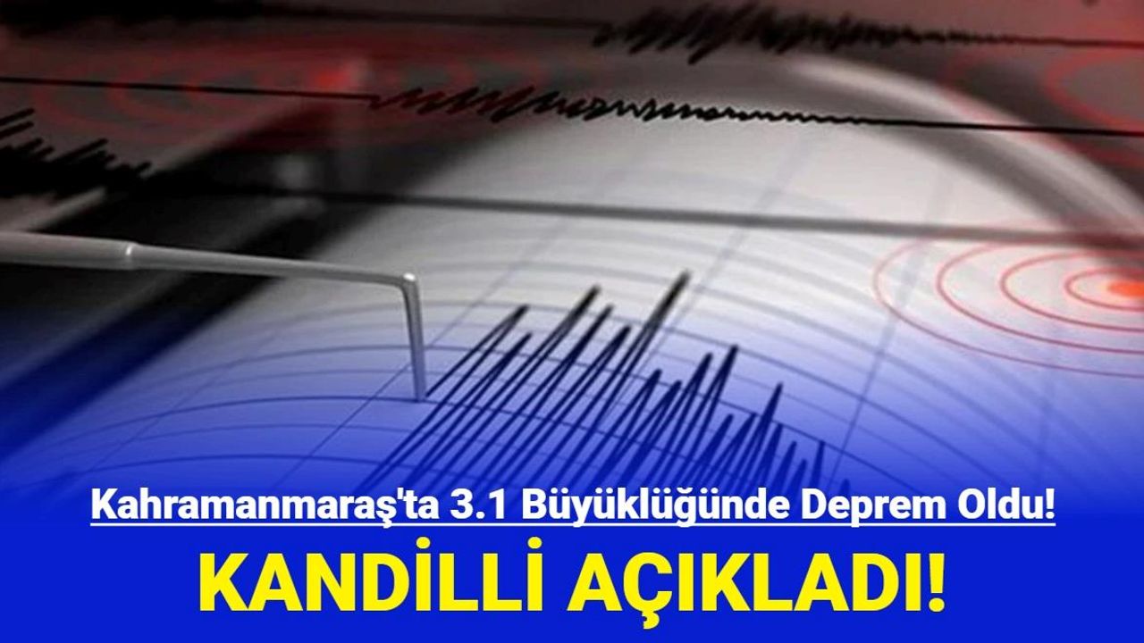 Boğaziçi Üniversitesi Kandilli Rasathanesi ve Deprem Araştırma Enstitüsü'nün verilerine göre; Kahramanmaraş'ta saat 13.47'de 3.1 büyüklüğünde deprem meydana geldi. Sarsıntının derinliği 4.8 kilometre olarak ölçülürken depremle ilgili olumsuz bir durum yaşanmadı.