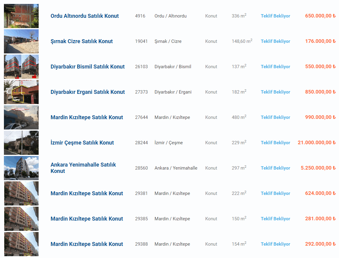 Satılık konutların listesine baktığımızda evlerin uygun fiyatlara, piyasanın en az yüzde 10 aşağısına satışa çıkarıldığı görüldü.