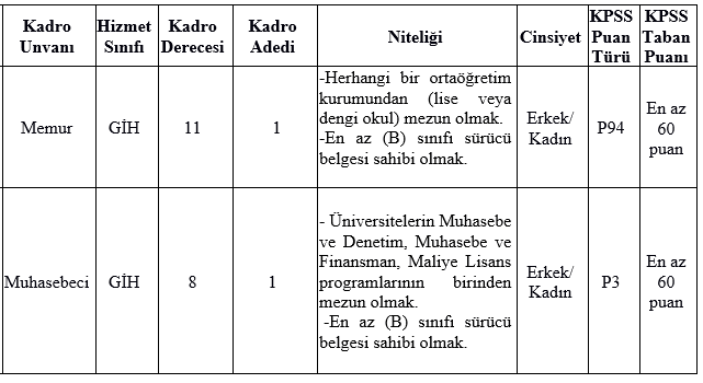 Karakaya Belediyesi lise mezunu düz memur ve lisans mezunu muhasebeci alımı yapacak.